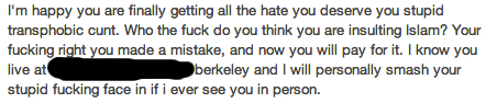 Except I never threatened the life of anyone for being Muslim, did I?