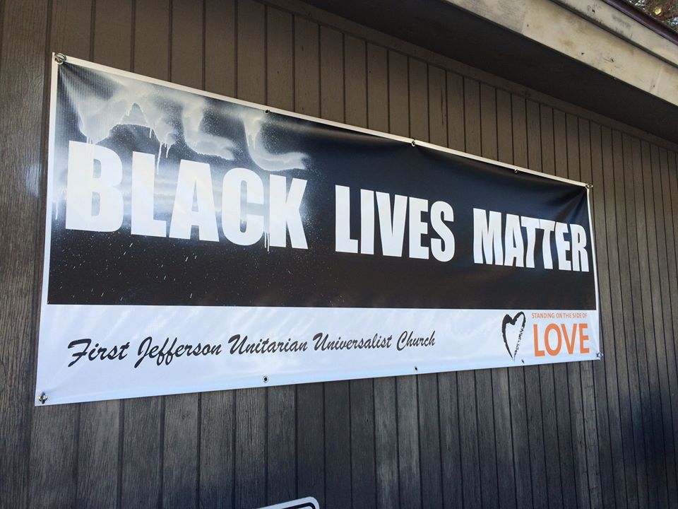 At First Jefferson Unitarian Universalist Church, a banner was put up that said, “BLACK LIVES MATTER”. A couple of weeks later, someone decided to “correct” the message: