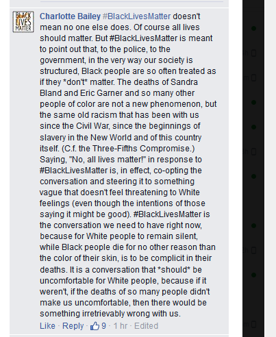I would go farther. If you as a white person are not willing to talk about what black people go through, if you as a Christian are not willing to talk about what Jews, Muslims or other non-Christians go through, if you as a man are not willing to talk about what women go through, and if you as a straight person are not willing to talk about what gays go through, YOU ARE PART OF THE PROBLEM!